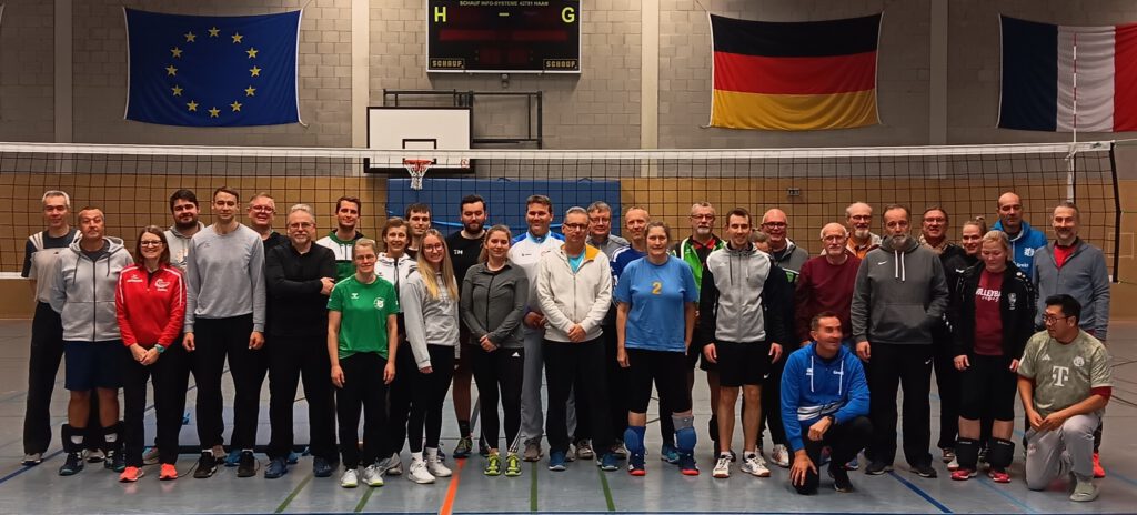 Wie in den vielen Vorjahren nutzten unsere Volleyballabteilung, der Volleyballkreis Kleve und der Westdeutsche Volleyball-Verband den spielfreien Totensonntag für eine TrainerInnen-Fortbildung. Dem attraktiven Thema „Einführung und Vertiefung von Annahmetechniken (frontal, seitlich und obere Annahme) mit exemplarischen Übungs- und Spielformen“ folgten 32 B/C-Lizenz-TrainerInnen aus dem ganzen Land in unsere Dietmar-Müller-Sporthalle. Unter Leitung des WVV-Referenten Eung-Zoll Chung wurde das in einer Videokonferenz am Sonntag zuvor und zu Beginn der Präsenzveranstaltung mit modernsten Analysemethoden in seine Einzelteile zerlegte Fortbildungsthema auf- und immer wieder umgebaut, bis alle Aspekte der Technik und Taktik sowie die Fragen und Anregungen der Teilnehmenden ausreichend berücksichtigt waren.