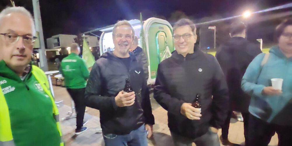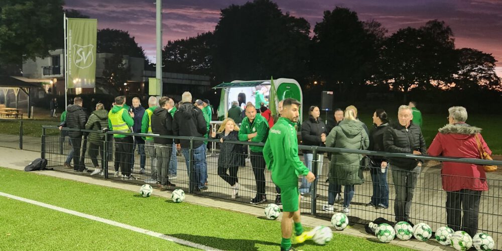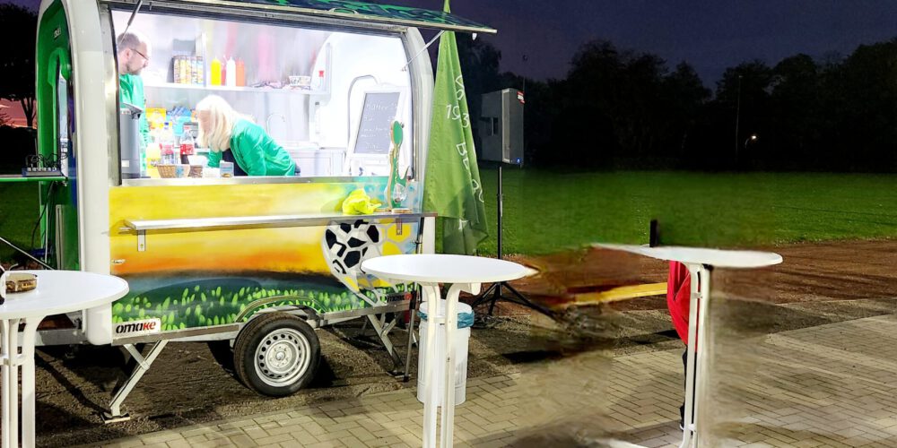 Ein solches Spiel war dann auch der passende Rahmen, um die neueste Errungenschaft unserer Fußballjugend enthüllen zu können – bereits von Weitem sichtbar, präsentierte sich unser neuer Verkaufsstand „Didi’s Büdchen“ den Besuchern der Partie und feierte einen Einstand nach Maß. Zuverlässig konnte hier der Durst der Besucher gelöscht werden und die Stehtische luden zum gemeinsamen „klönen“ ein!
