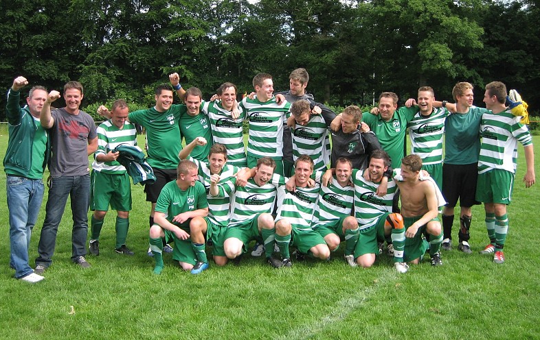 Trotz einer 3:4 Niederlage beim SV Sevelen schafft die Mannschaft von Trainer Thomas Erkens den lang ersehnten Aufstieg in die Kreisliga A. Das 1. Spiel am letzten Donnerstag hatten die Grün/Weißen mit 3: 0 gegen Kervenheim gewonnen, so dass man sehr optimistisch in den Süden des Kreises Kleve fuhr. Als die Mannschaft dann kurz nach der Pause mit 0:3 Toren hinten lag, schwanden schon alle Aufstiegshoffnungen. Simon Schoofs verkürzte zum 1:3, worauf die Sevelener prompt einen nachlegen. Dann waren es jedoch erneut Simon Schoofs und Andreas Peter, die zum 3:4 Endstand trafen.